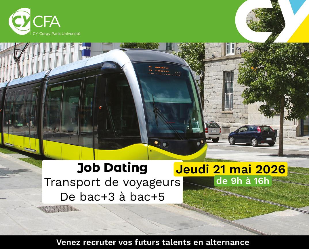 La 4e édition du Job Dating Transport du CFA CY approche à grands pas et cette année, nous avons le plaisir d’annoncer une nouveauté : un job dating 100% transport de voyageurs et logistique avec le master Transports, mobilités, réseaux et ses 3 parcours, ainsi que la présence des futurs apprentis en LP TV !